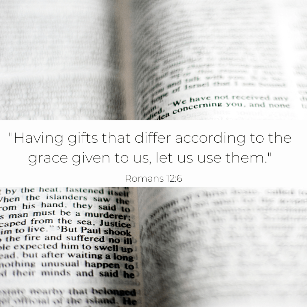 There are many more gifts that God gives us through the Holy Spirit. Paul just outlines a few here. It is up to us to listen and discern what God has called us to do. What gifts to you use in your everyday life that also can be used for God? Are you fulling using the gift to help build up God’s people and to express God’s love to others?